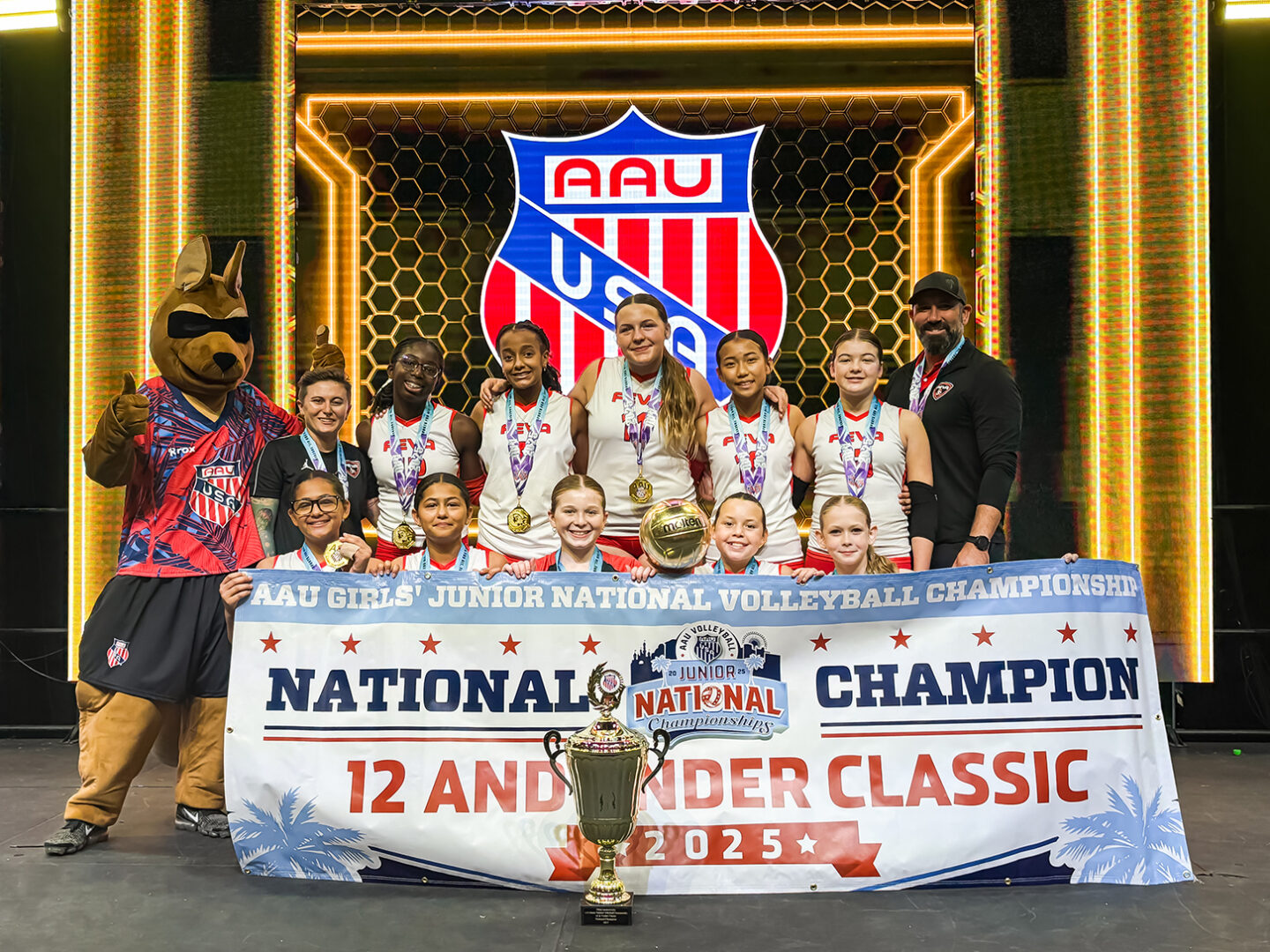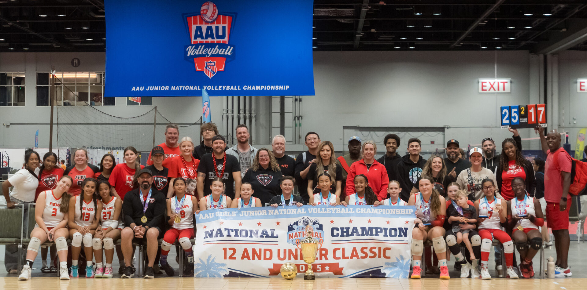 FEVA 12 Brittany are AAU National Champions! These amazing ladies showed unwavering determination and teamwork, facing every challenge with courage and ferocity. This unstoppable team rose to the top of the podium—without losing a match all tournament! What is even more amazing is this is the second year in a row our U12 team has won the National Championship, as Coach Brittany also took home the trophy at the 2024 AAU National Championships!