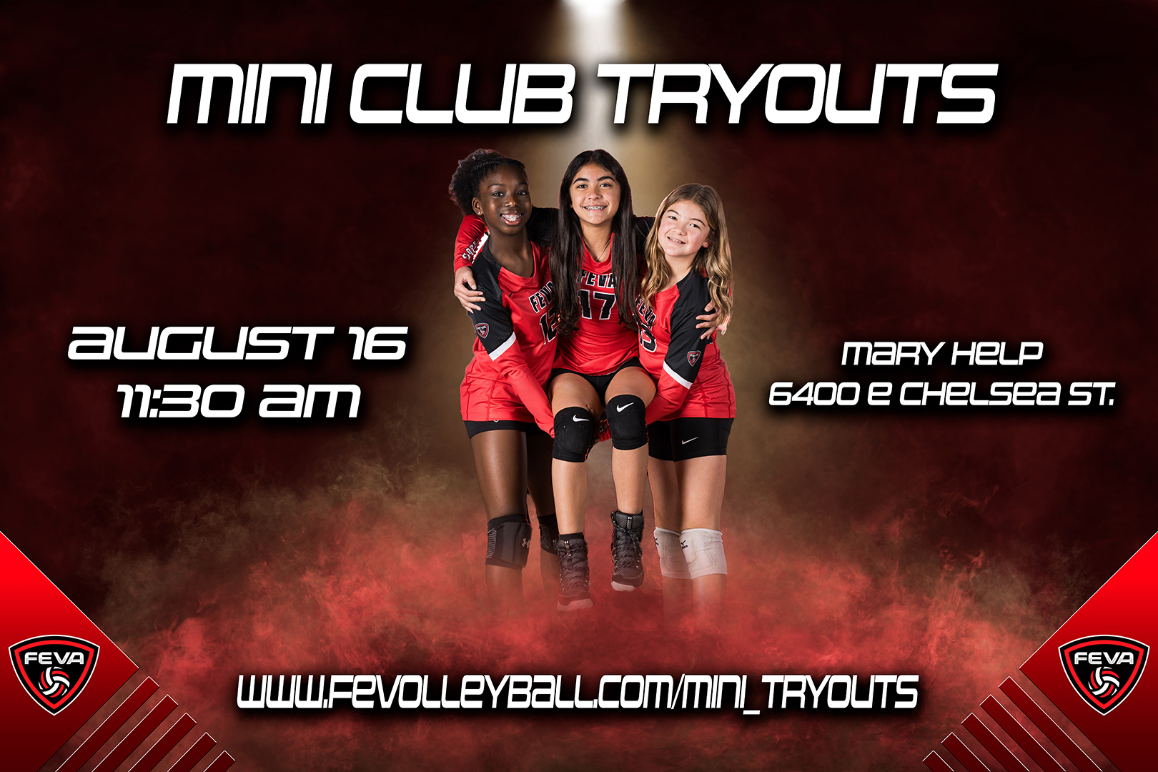 MINI CLUB Mini Club is a pre-season for elementary and middle school kids to train and play competitively in club volleyball. They have 2 practices a week and 3 tournaments during the 7 weeks. Practice for the 2025 mini-season begins in early September (Date TBD). TRYOUT DATE – August 16 @ Mary Help of Christians Gymnasium (6400 E Chelsea St.) 11:30am-2pm Click Here to Register for Mini ClubTryouts